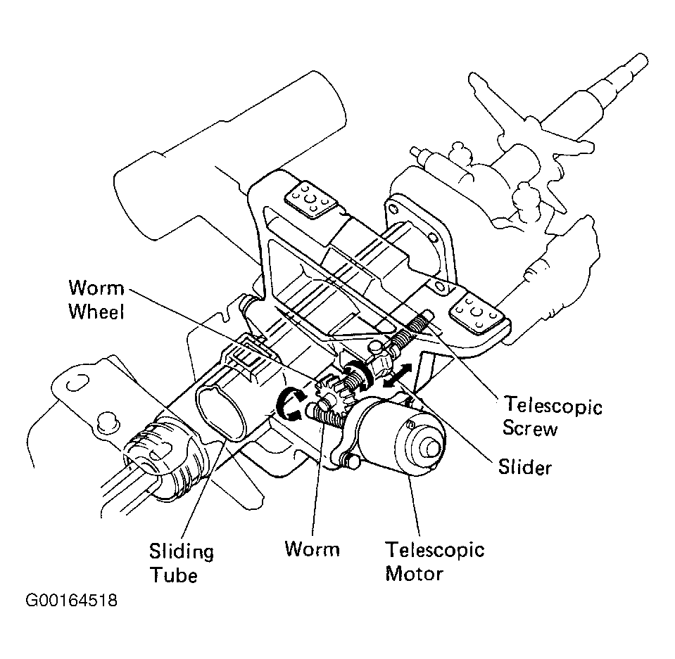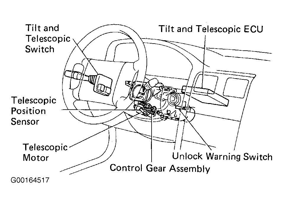 The power telescopic mechanism is composed of the control gear assembly, telescopic motor, telescopic position sensor, tilt and telescopic switch, unlock warning switch and tilt and telescopic ECU. See Fig 1.
