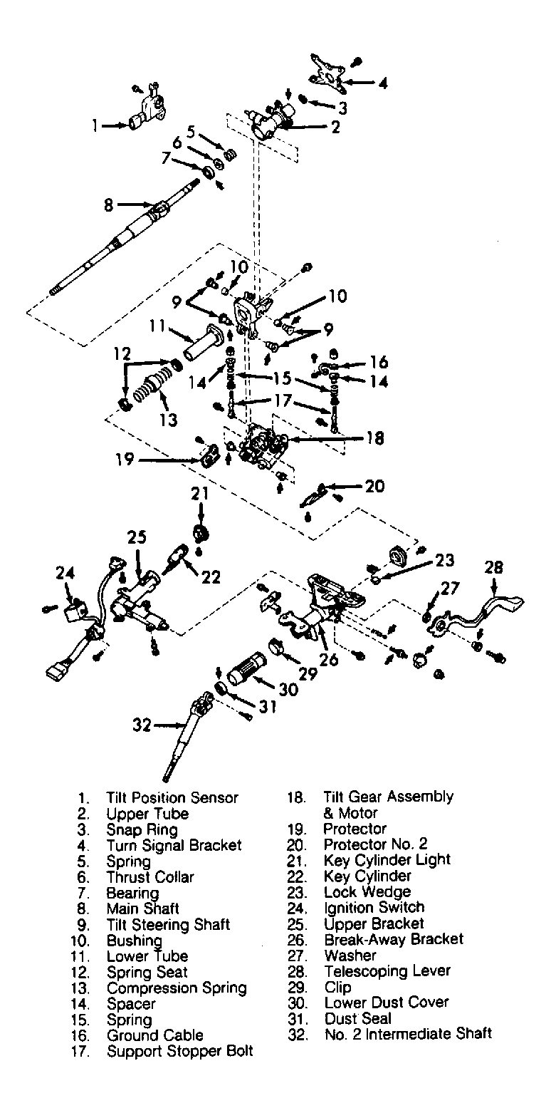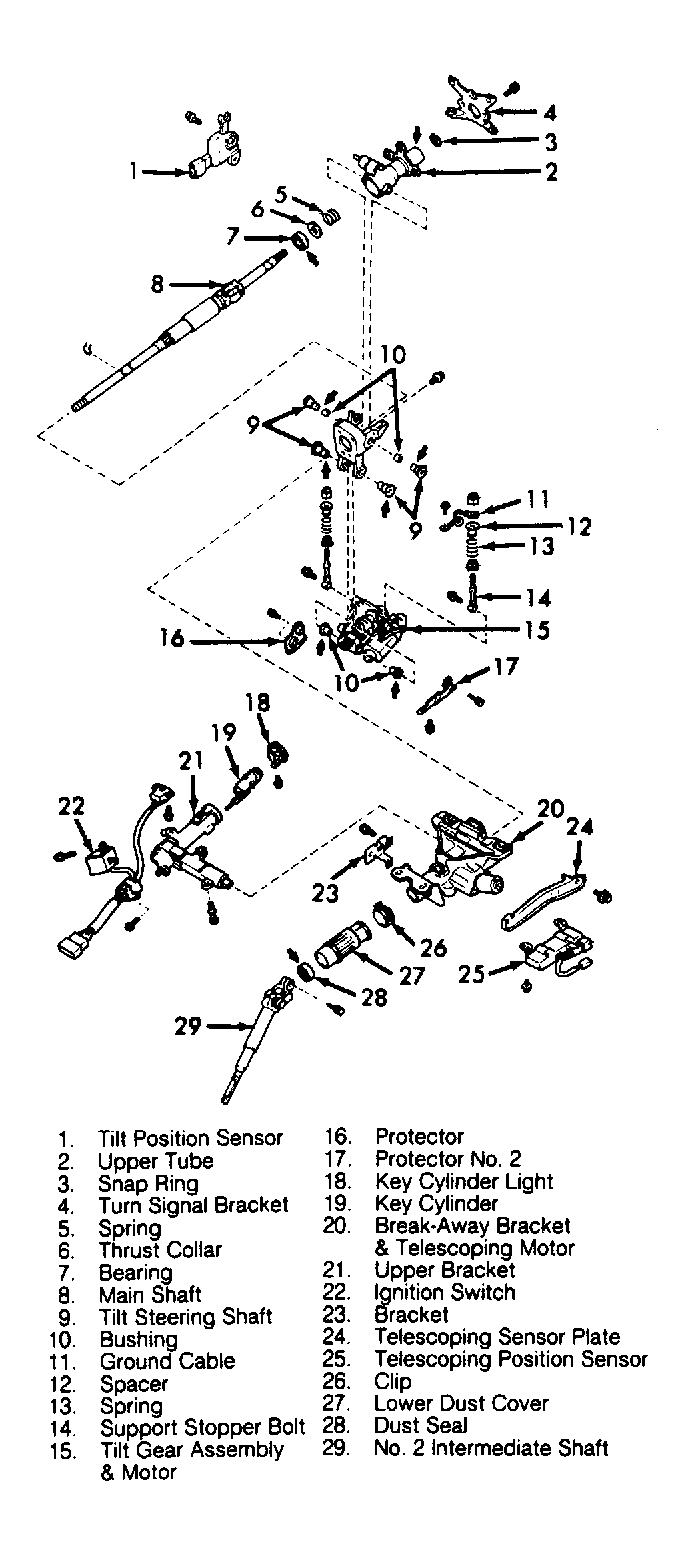 Fig 2: Exploded View of Power Tilt/Manual Telescoping Steering Column (LS400)