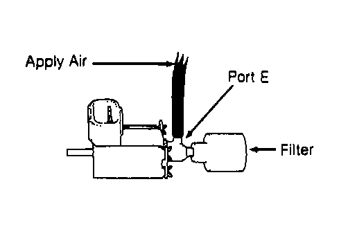 4. Apply battery voltage between VSV terminals. Apply air to port "E". See Fig 1. Air should flow from port "E" to filter. If air does not flow as indicated, replace VSV.