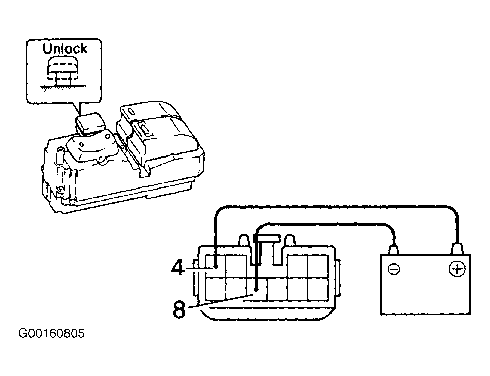 - Set the window lock switch to the lock position, check that all the passenger's power window switch illuminations go out. See Fig 2. If operation is not as specified, replace the master switch.