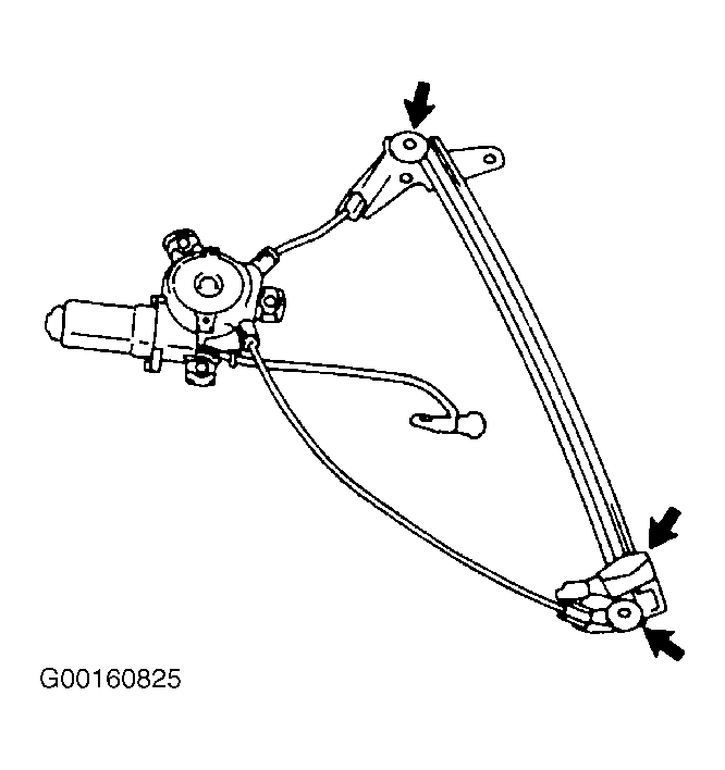 NOTE: Before installing parts, coat them with multi-purpose grease. Apply multi-purpose grease to the sliding surface and rollers of the window regulator. Apply multi-purpose grease to the door glass guide rollers. See Fig 1.