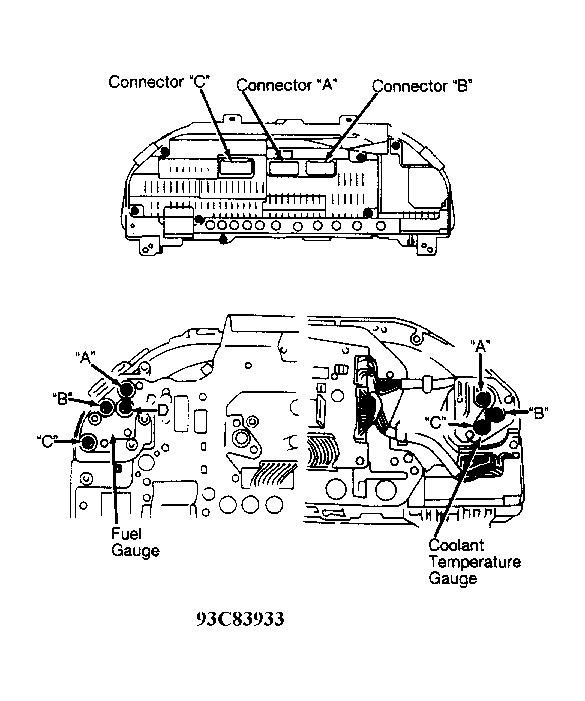 - Test bulb should light and fuel gauge needle should move toward "F" mark. If operation is not as specified, check fuel gauge resistance. Using an ohmmeter, check resistance between specified terminals. See FUEL GAUGE RESISTANCE TEST table. See Figure.