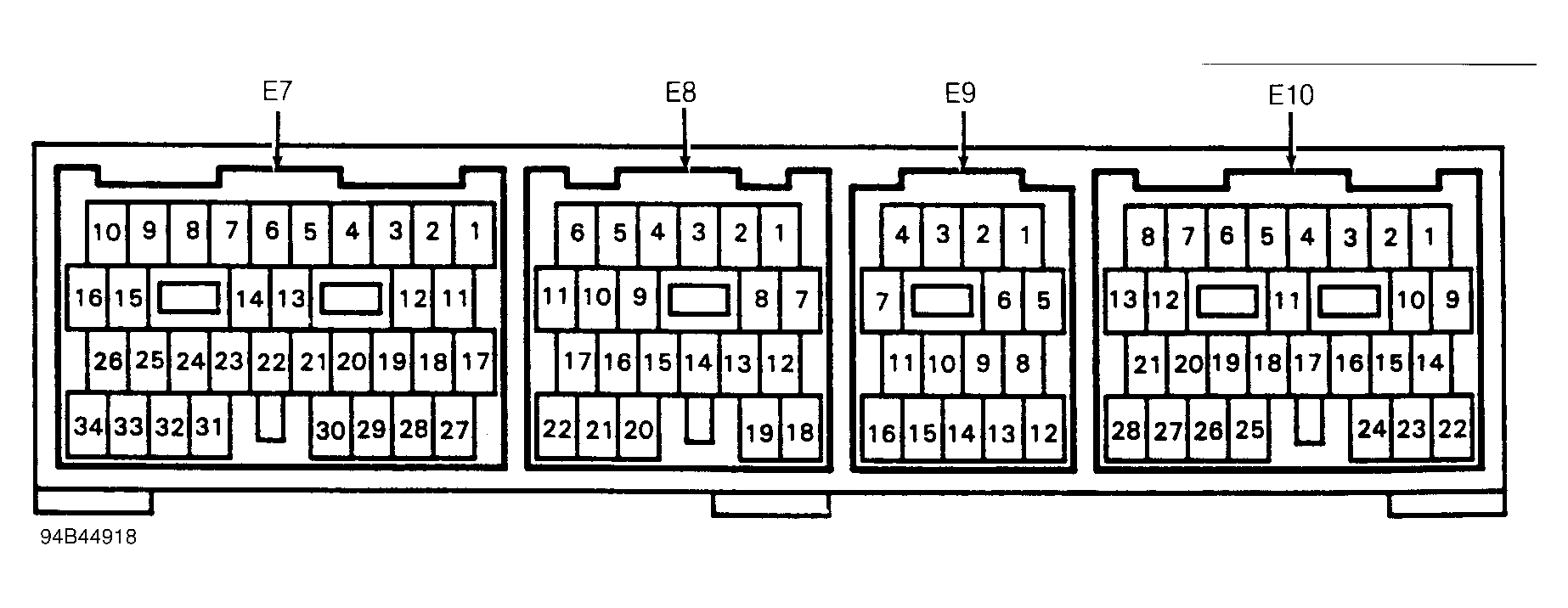 - Connect voltmeter positive lead to terminals No. 22 and 23 (Black/Orange wires) of ECM connector E10. If battery voltage is present, ECM power circuit is okay. If battery voltage is not present, check EFI main relay. See RELAYS under MODULES , MOTORS, RELAYS & SOLENOIDS.