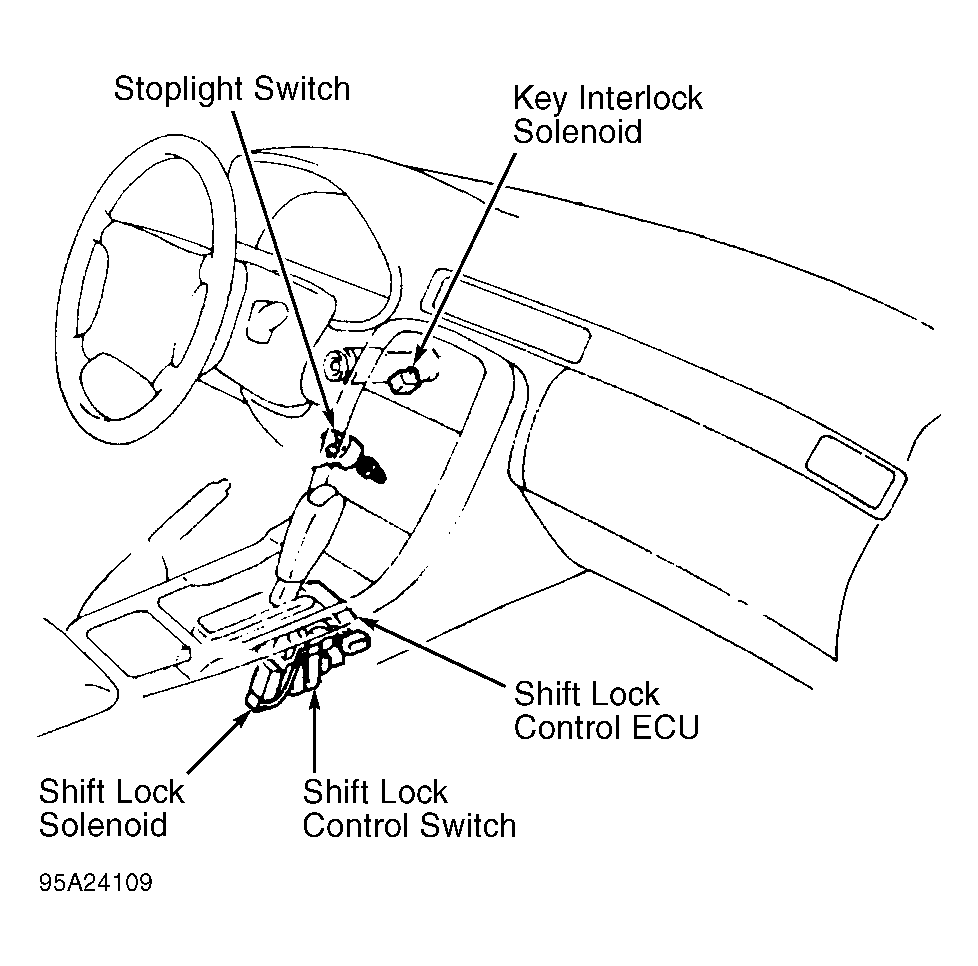 | Shift Lock Control Unit | Under center console, left of shifter. See Figure & Figure . | |