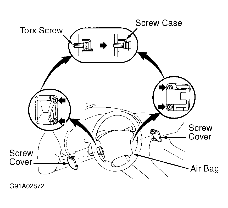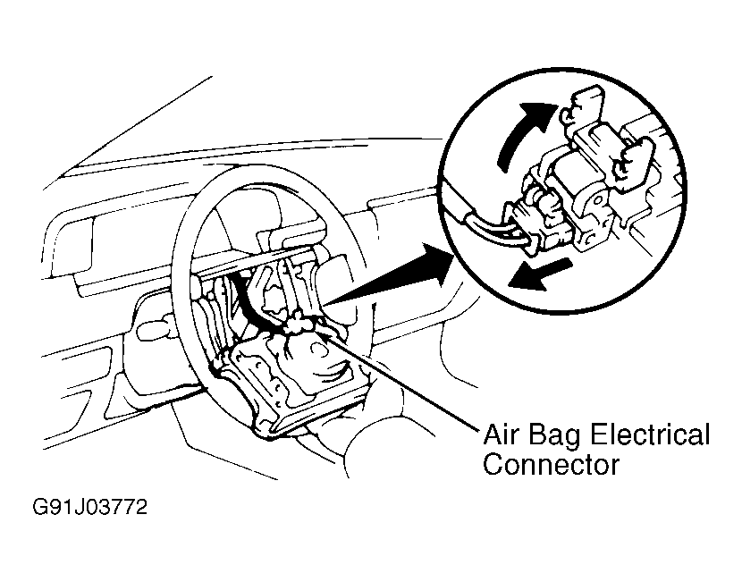 Turn ignition switch to LOCK position. Disconnect and shield negative battery cable. Wait at least 2 minutes before working on system. Remove steering wheel pad. See STEERING WHEEL AND HORN PAD . See Figure and Figure .