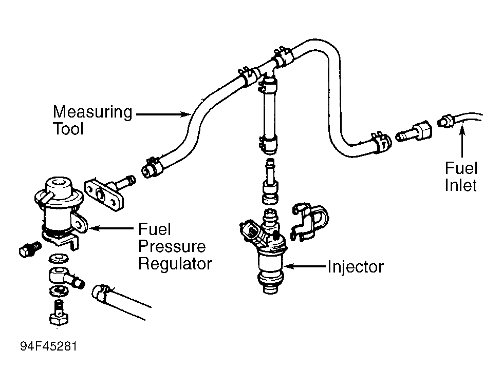 - Remove fuel injector. Connect Injection Measuring Tool Set (9268-41045). See Fig 1. Attach a piece of vinyl tubing to bottom of fuel injector to prevent fuel splash. Put vinyl tubing into a graduated measuring cylinder.