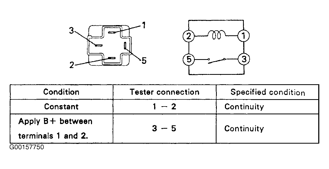 Remove power main relay. Power main relay is located on back of junction block No. 1, under driver's side of instrument panel. Check continuity of power main relay as specified. See Fig 1. If continuity is not as specified, replace the relay.