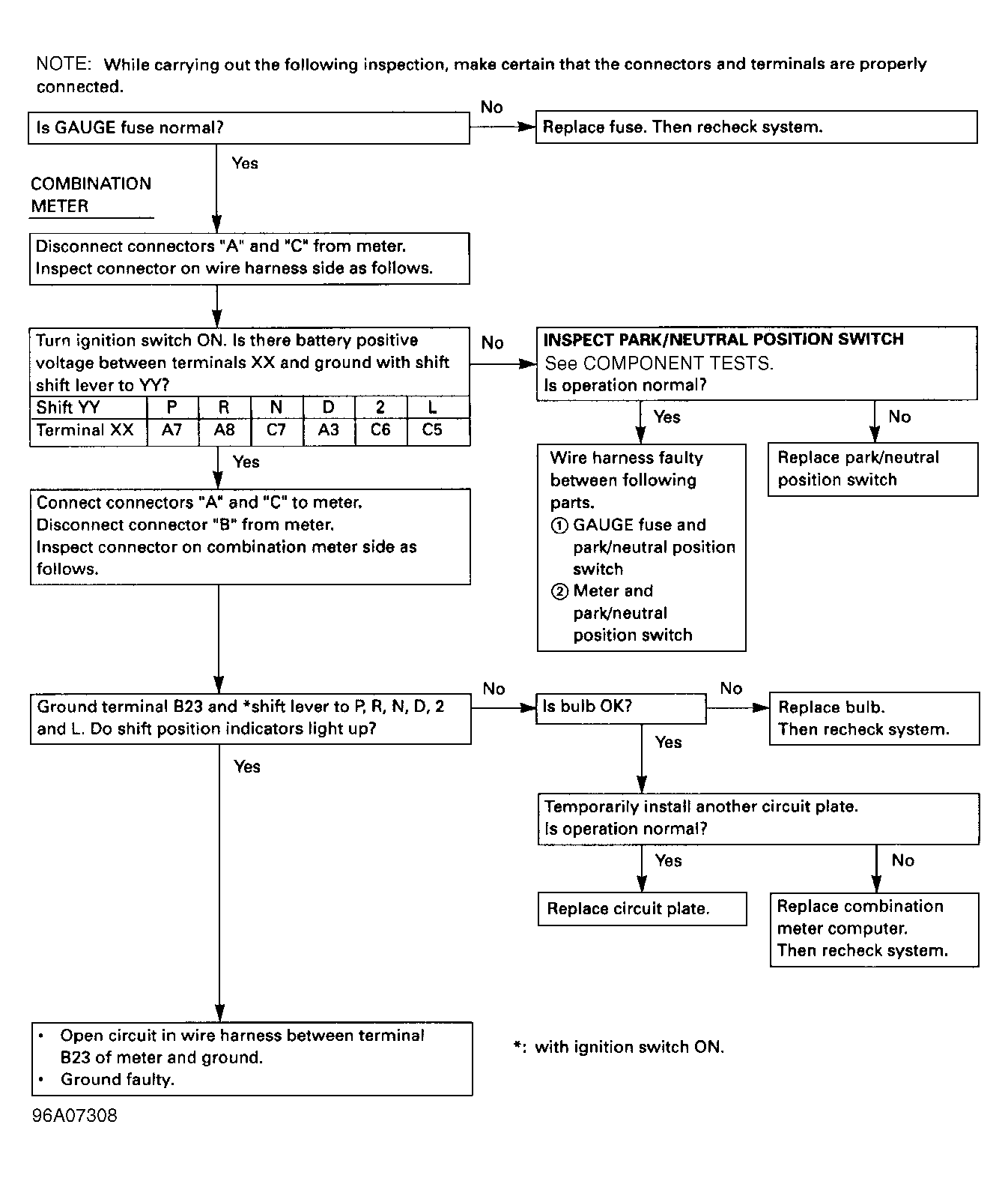 | Abnormal Shift Position Indicator Operation Or Indicator Does Not Illuminate | See Figure | |