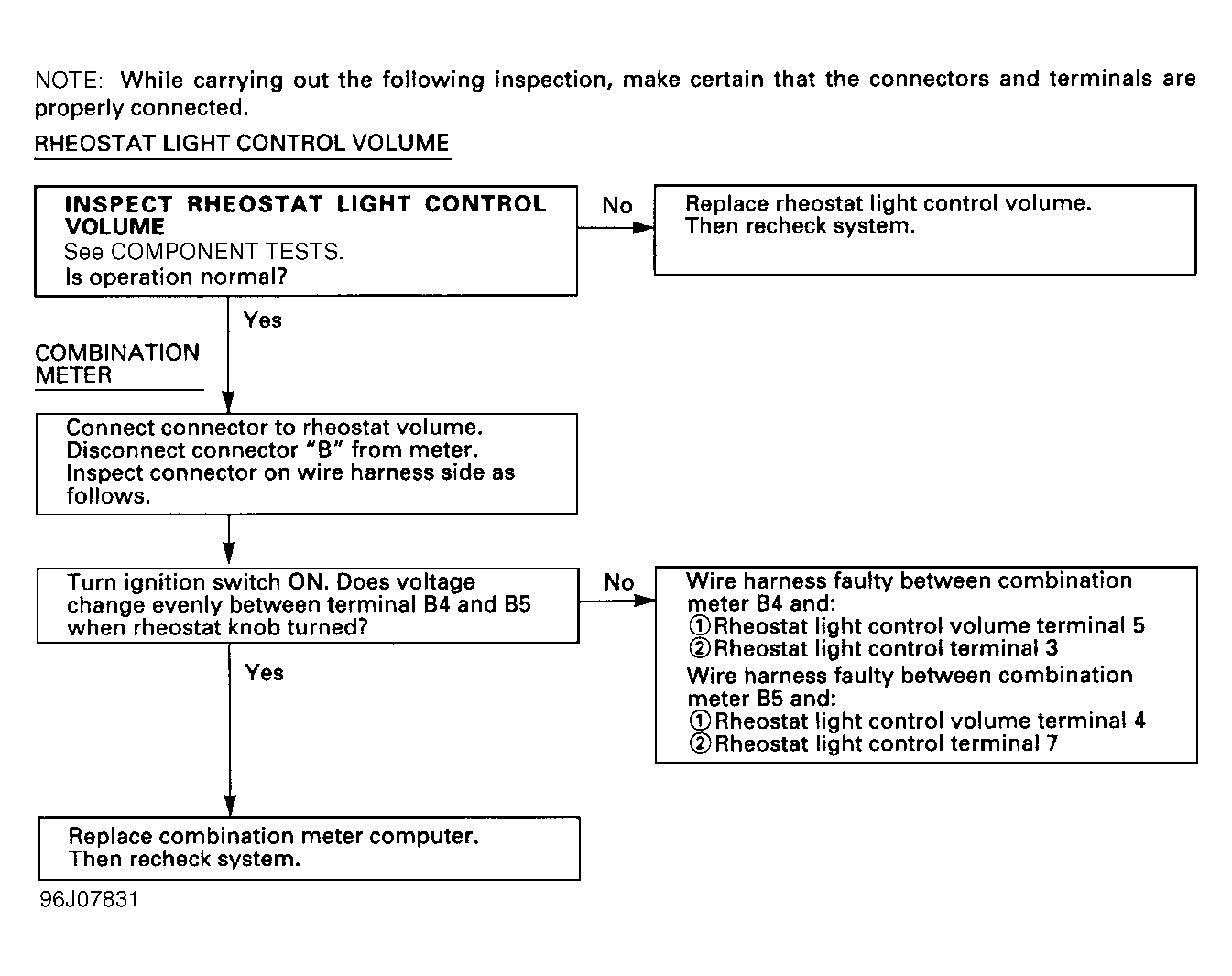 | Brightness Does Not Change When Rheostat Is Turned | See Figure | |