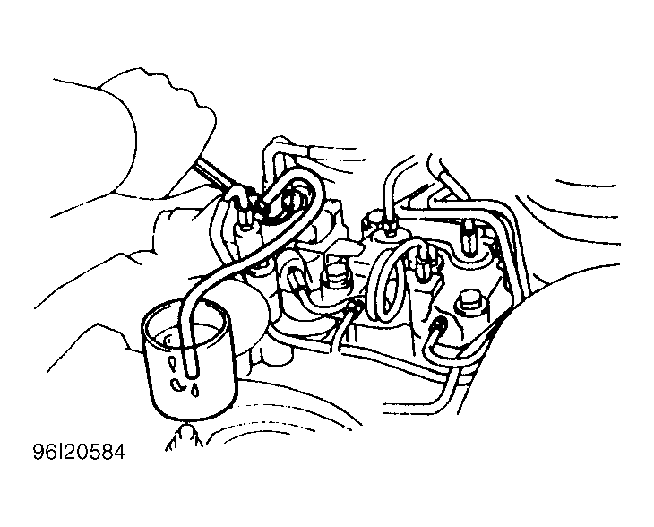 3. Ensure there are no Diagnostic Trouble Codes (DTC) stored. Clear codes if necessary. See CLEARING CODES  under DIAGNOSIS & TESTING. Fill brake fluid reservoir with engine at idle.
