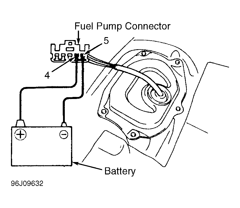 - Remove rear seat cushion. Remove fuel pump access cover. Disconnect fuel pump connector. Connect battery voltage to specified terminals on fuel pump connector to activate fuel pump. See Fig 2 or 29. Go to next step.