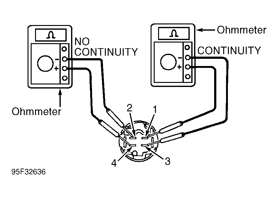 - To test circuit opening relay continuity, use ohmmeter to check continuity between specified terminals. See Fig 2.