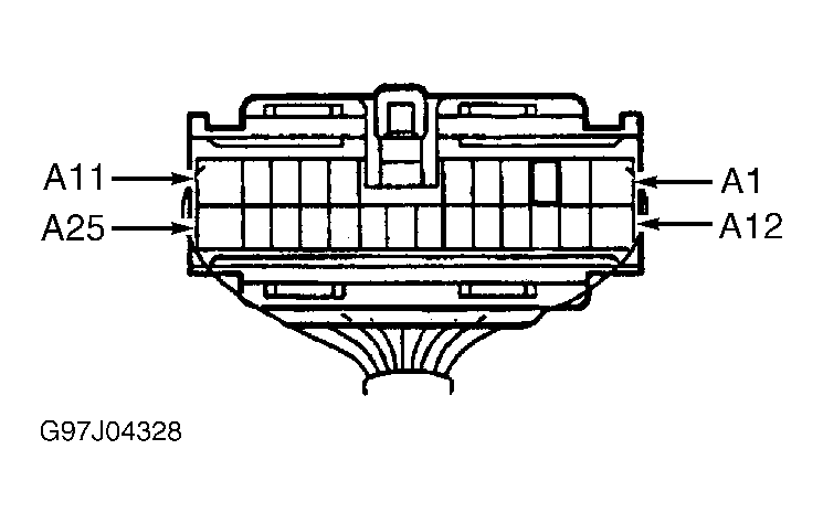 Backprobe for voltage between integration relay harness connector terminal A3 and ground. See Fig 1. Turn ignition on, then off. Battery voltage should exist for about 60 seconds, or until a door is opened. If voltage is not as specified, check integration relay circuits. See DOOR LOCKS, TRUNK LID & FUEL DOOR - POWER article.