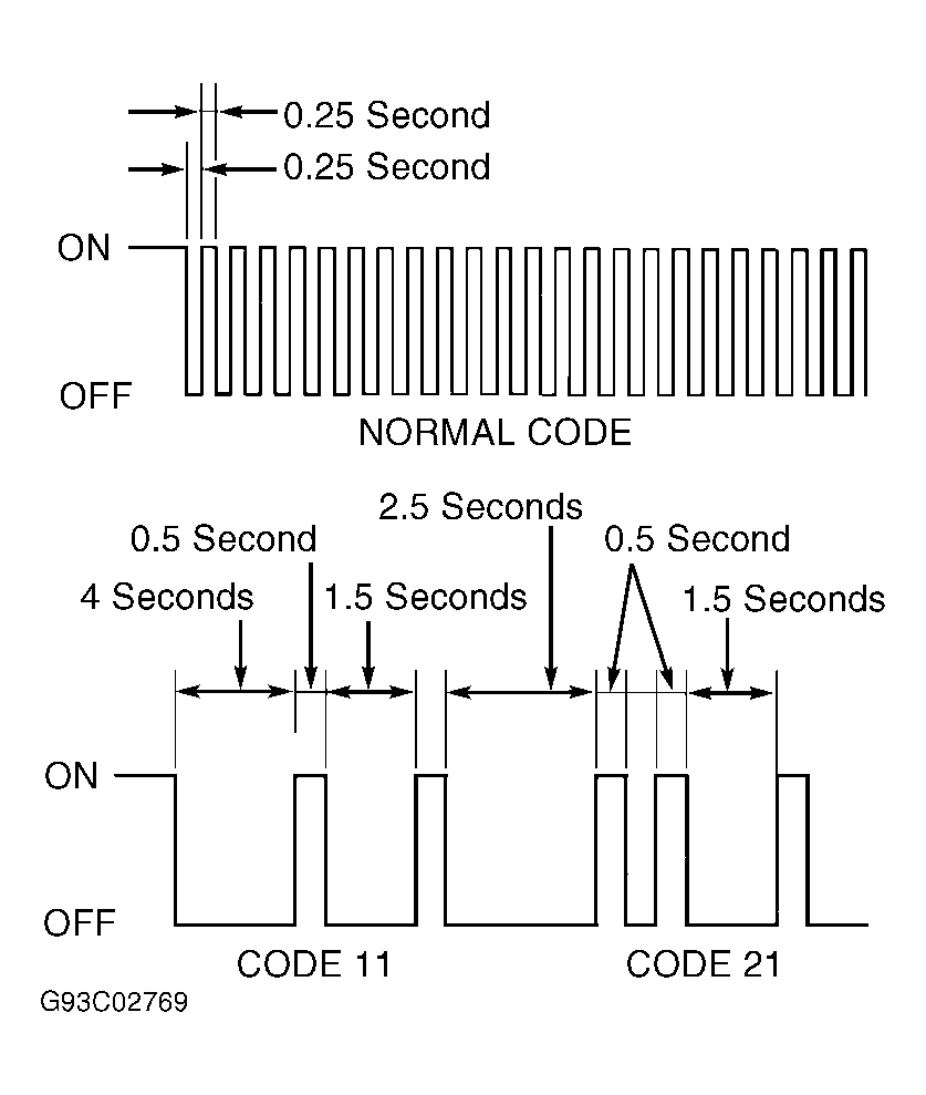 Trouble codes are displayed as flashes of open door indicator light. All trouble codes are 2-digit numbers. Pay careful attention to length of pauses in order to read codes correctly. See Fig 1.