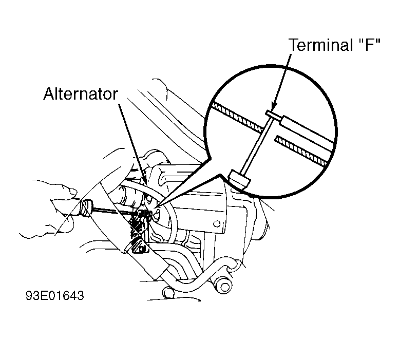 - If output voltage is low, by-pass regulator (full field generator) by grounding terminal "F" at back of generator. See Fig 1. Recheck charging system output voltage. If voltage now exceeds output voltage specified in GENERATOR OUTPUT SPECIFICATIONS table, replace regulator and recheck. If output voltage is still incorrect, repair or replace generator.