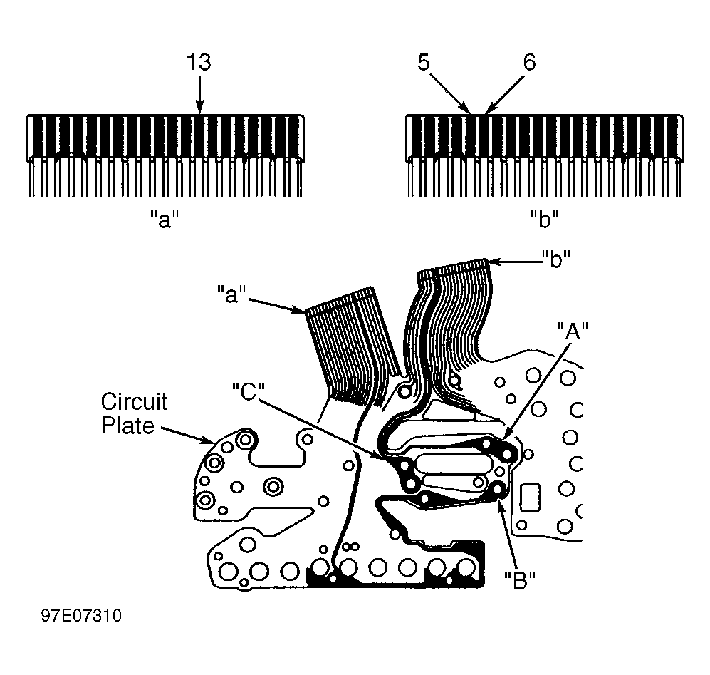 - Check continuity of instrument panel power source unit. See Fig 2. Continuity should exist between A and b6, B and a13, C and b5. Replace instrument panel power source unit if continuity does not exist.