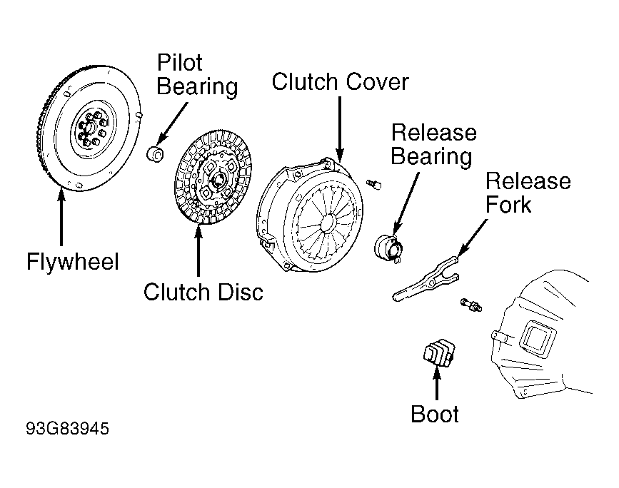 The disc-type clutch uses a diaphragm spring to engage the pressure plate. A hydraulically-operated release system, consisting of a master cylinder and slave cylinder, operates a lever connected to a release bearing. See Fig 1. Clutch operation is controlled by clutch pedal.