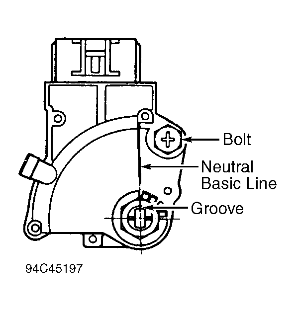 Loosen bolt that secures PNP switch to transmission. Move shift shaft into Neutral (2 detents from Park). Align groove on shift shaft with neutral basic line on PNP switch. See Fig 1. Tighten bolt.