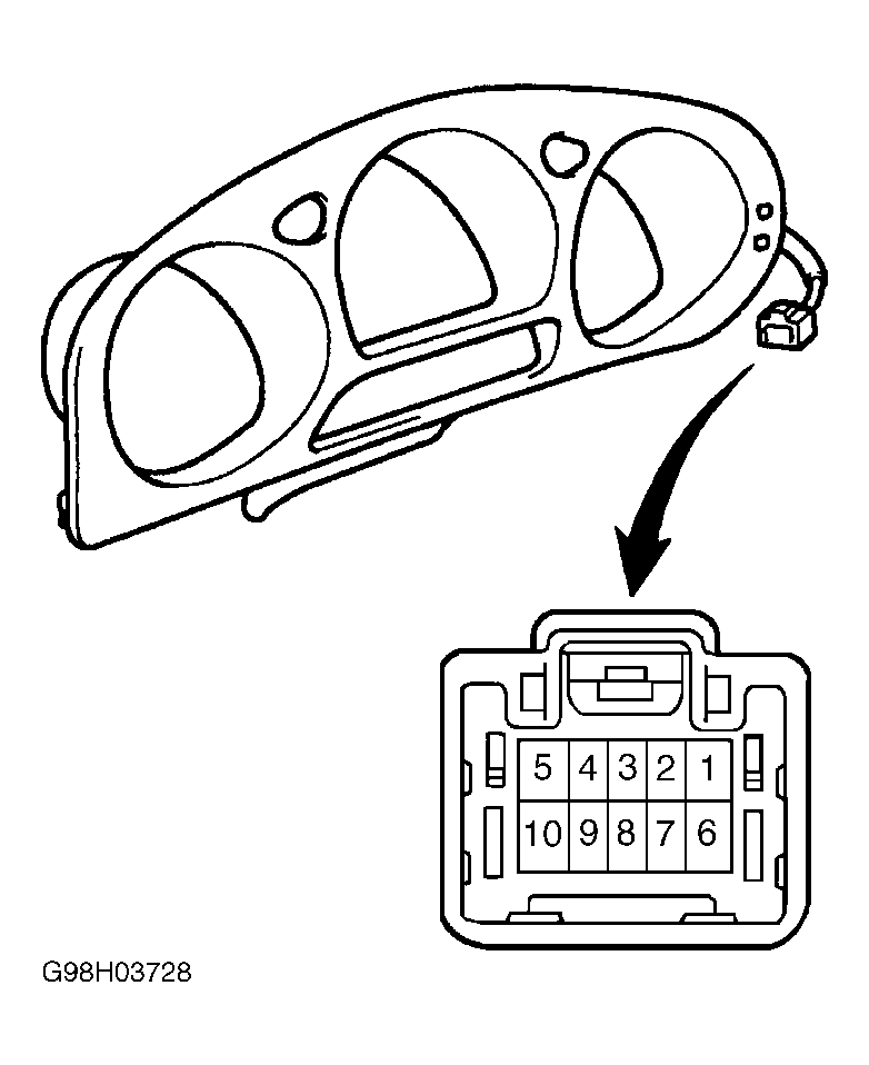 Remove instrument cluster. Refer to INSTRUMENT CLUSTER under REMOVAL & INSTALLATION. Check resistance between 10-pin telltale light assembly terminals. Refer to TELLTALE LIGHT ASSEMBLY table. See Fig 1.