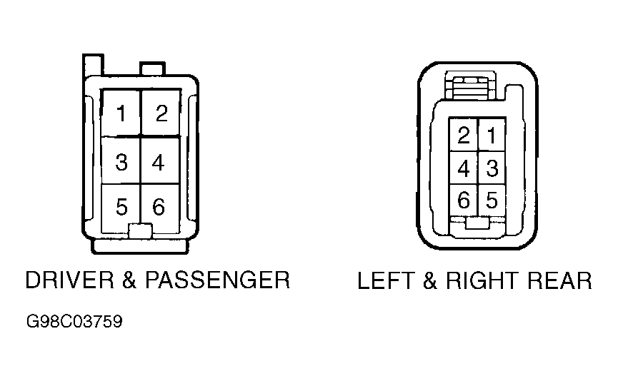 - Disconnect window motor connector. Apply battery positive lead to motor connector terminal No. 1 and battery negative lead to motor connector terminal No. 2. See Figure. Window motor should turn clockwise. To reverse motor direction, reverse polarity of voltage to motor. Replace motor if it does not turn counterclockwise.