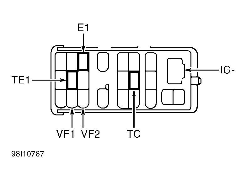 - Install Jumper Wire (SST 09843-18020) between terminals TE1 and E1 of DLC No. 1. See Fig 2. Connector is located near air intake chamber. Check base timing. See IGNITION TIMING table.