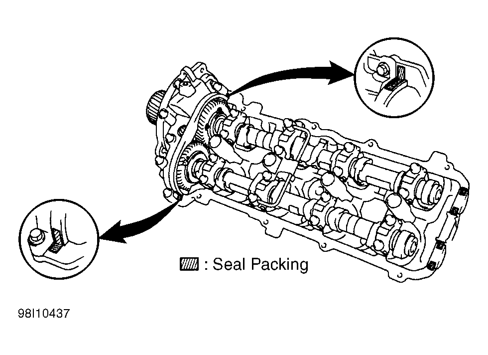 8. To complete installation, reverse removal procedure. Remove old valve cover seal packing material. Install NEW Seal Packing (08826-00080) material. See Figure. Use NEW gaskets as necessary. Tighten nuts and bolts to specification. See TORQUE SPECIFICATIONS .
