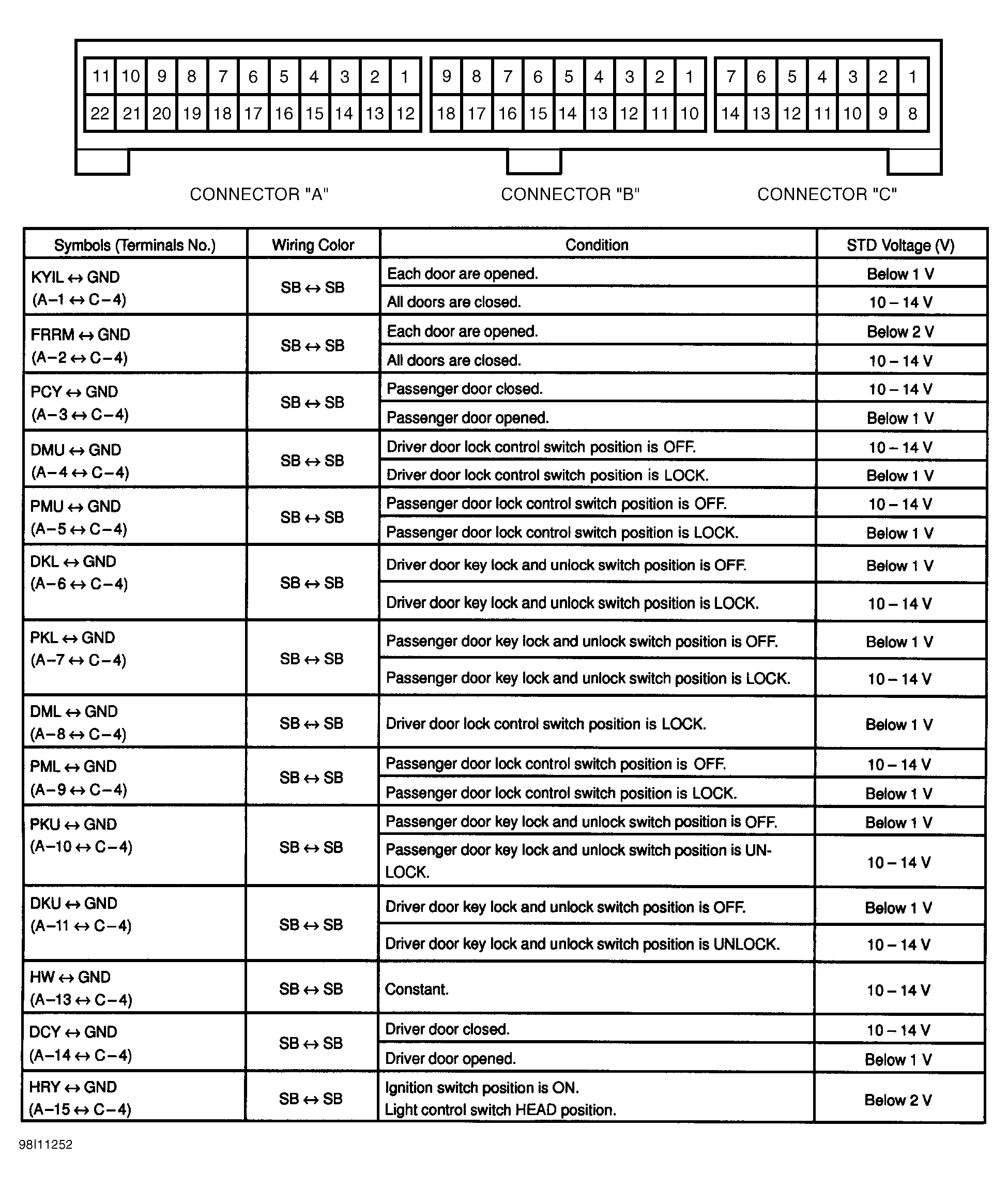 | TEST NO. 15 | Check Door Key Lock & Unlock Switch |