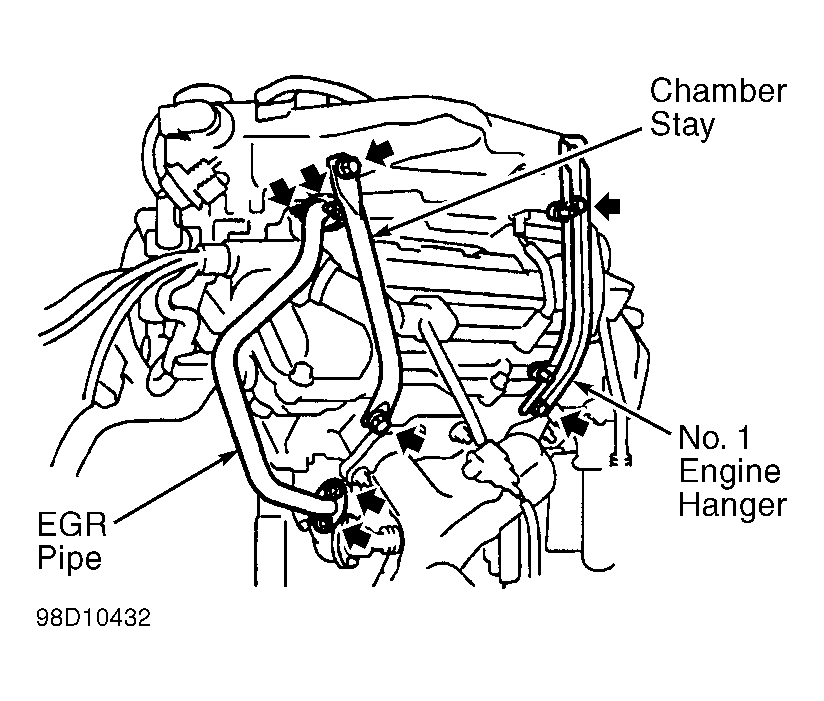 - Remove EVAP hose from pipe on emission control valve set. Remove vacuum hoses from ACIS vacuum tank. Disconnect engine wire clamp from emission control valve set. Remove bolts and No. 1 engine hanger. Remove bolts and air intake chamber stay. Remove nuts, No. 2 EGR pipe and gaskets. Remove bolts, nuts and intake chamber assembly and gasket.