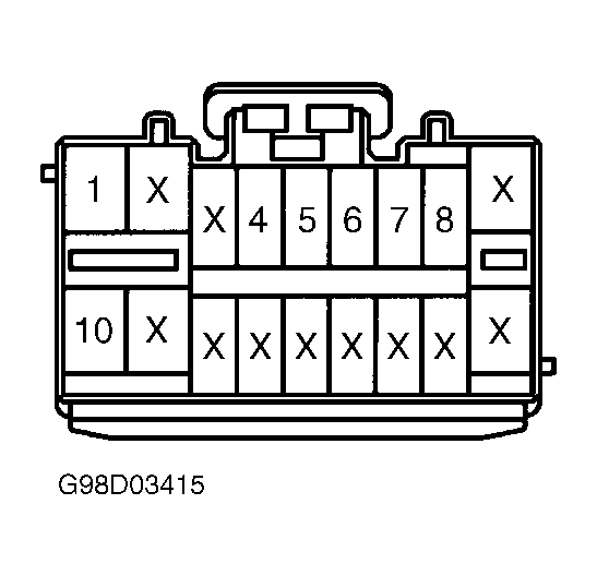 - Remove tilt and telescopic control module with connectors connected. Remove tilt sensor with harness connector still connected. Manually turn tilt position sensor lever to fully lowered position. Measure voltage between control module connector (T10), terminals No. 5 (Brown wire) and No. 7 (Pink/Blue wire). See Figure. Voltage should be 4-6 volts.