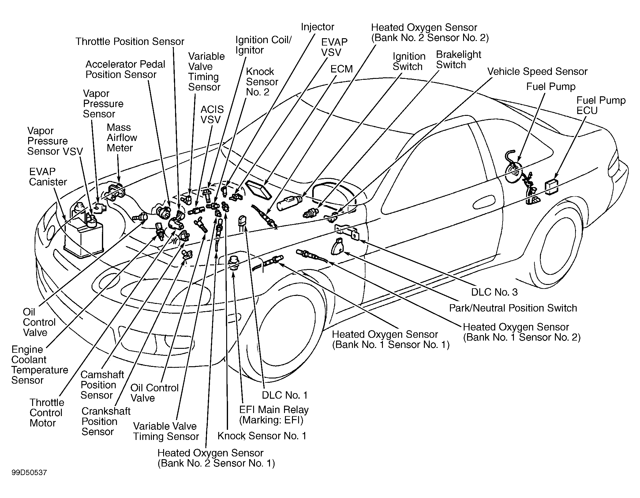 Fig 6: Locating Computerized Engine Control Components (RX300)