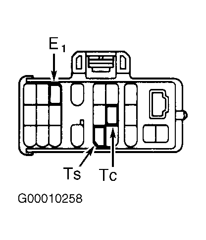 Turn ignition on. Check voltage between terminals Tc and E1 of Data Link Connector No. 1 (DLC1). See Figure. If battery voltage is present, circuit is okay (ABS/TRAC/VSC ECU may be faulty if light does not blink when connecting a jumper wire between terminals Tc and E1). If battery voltage is not present, check circuits between ABS/TRAC/VSC ECU and DLC1 and circuits between DLC1 and ground. See WIRING DIAGRAMS . If circuits are okay, replace ABS/TRAC/VSC ECU.