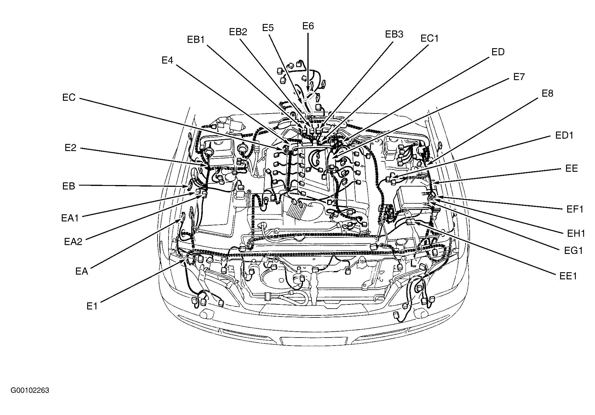 | E8 | In engine harness, at left rear of engine compartment. See Figure. |