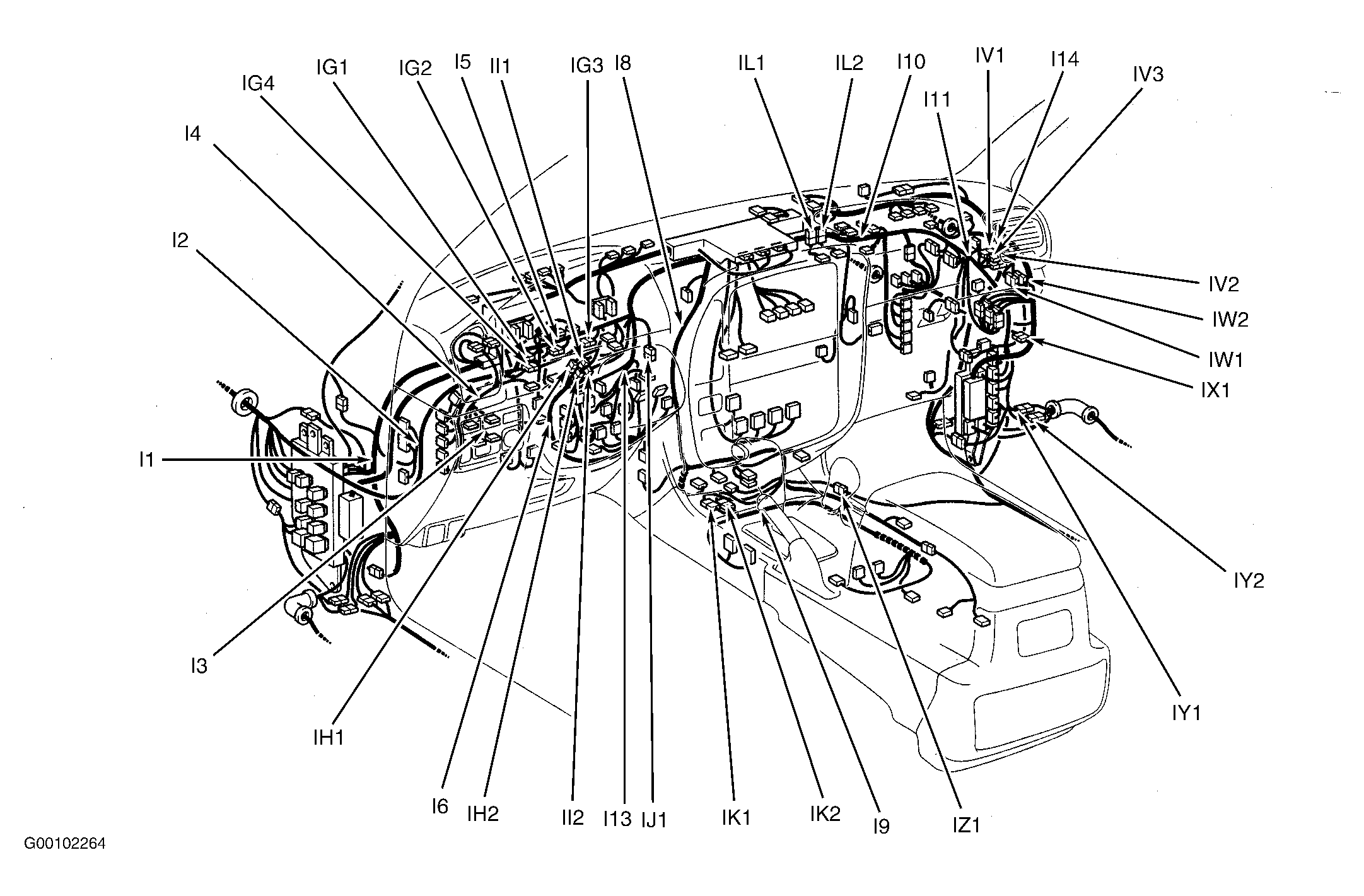 | I10 | In dash harness, behind right front air bag. See Figure. |