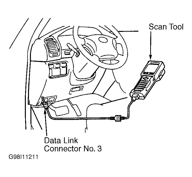 - Connect scan tool to data link connector No. 3. See Figure. Scan tool is used to read throttle valve opening which is displayed as a percentage. Ensure Malfunction Indicator Light (MIL) on instrument panel is not illuminated. If MIL is not illuminated, go to next step. If MIL is illuminated, a Diagnostic Trouble Code (DTC) may be stored in Engine Control Module (ECM). Retrieve DTCs and perform appropriate diagnostic test. See SELF-DIAGNOSTICS - INTRODUCTION article.