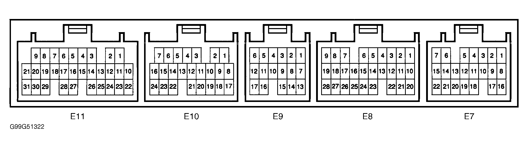 6. Check EFI main relay located in engine compartment fuse/relay box at left front of engine compartment. See RELAYS  under RELAYS & SOLENOIDS. If EFI main relay is okay, check circuit between chassis ground and terminal No. 8 at ECM E7 connector. See appropriate wiring diagram in WIRING DIAGRAMS article. Repair as necessary. If circuit is okay, repair circuit between battery and EFI fuse.