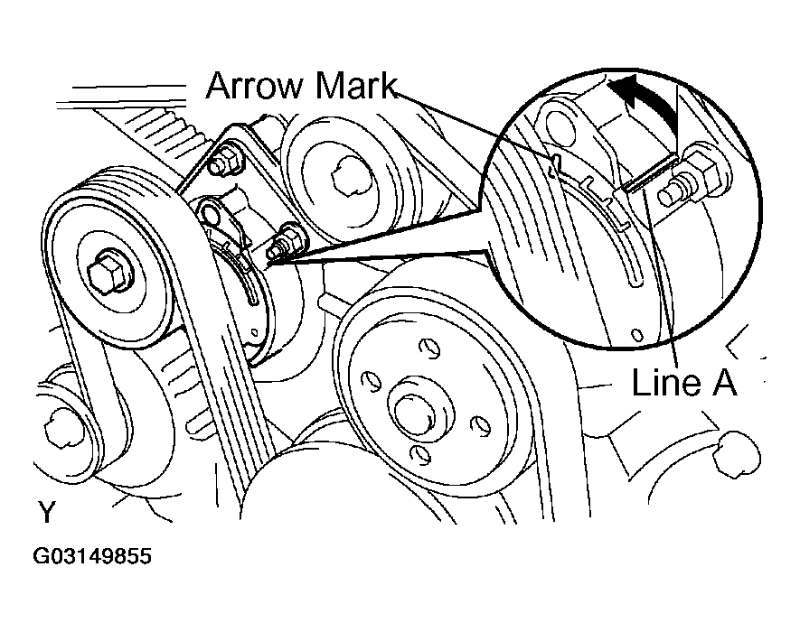 - Check the alignment of the belt tensioner pulley to make sure the drive belt has not slipped off the pulley. If necessary, replace the belt tensioner.