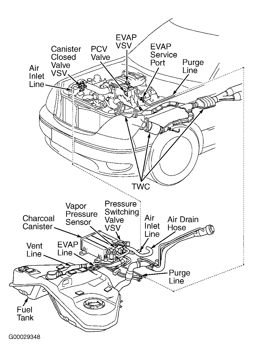 Fig 3: Identifying EVAP System Components (GS300 Shown; IS300 Is Similar)