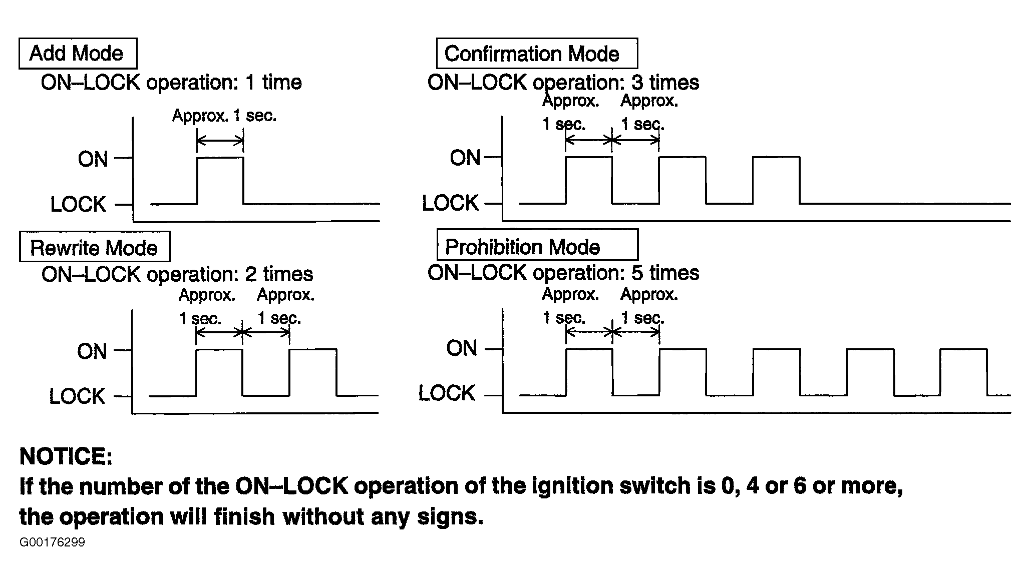 - Multiplex communication system (MPX) body ECU automatically performs the LOCK-UNLOCK operation within 3 seconds to inform the operator of a selected mode. See Fig 2.