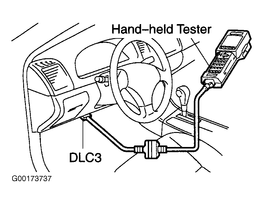 - Hook up the hand-held tester to the DLC3. See Fig 1.