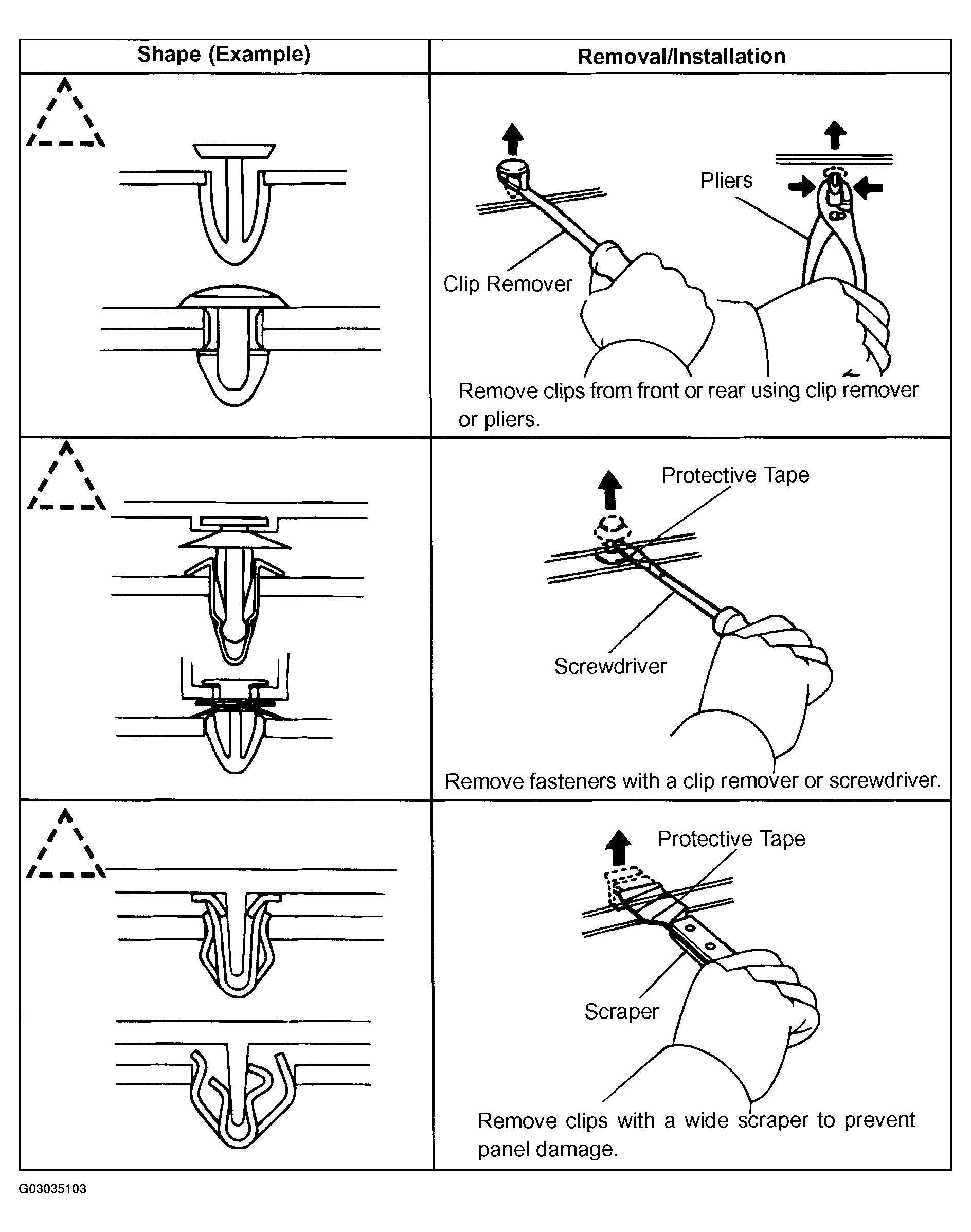 1. The removal and installation methods of typical clips used in body parts are shown in Fig 6 .