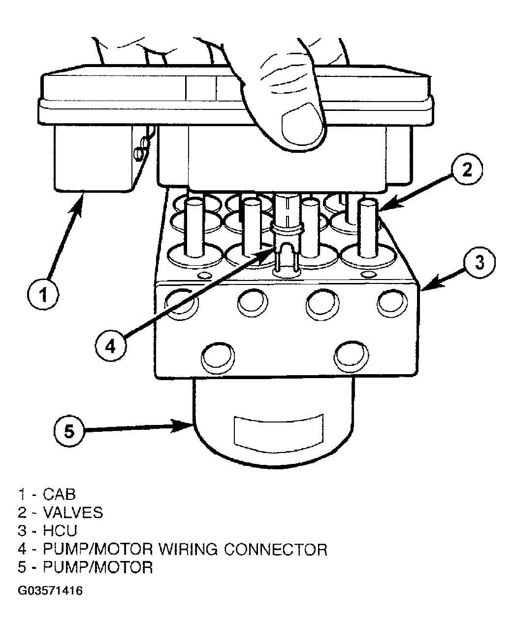2. Align CAB solenoids and pump/motor wiring connector with HCU valves and connector passage (Fig 2). Slide CAB onto HCU.