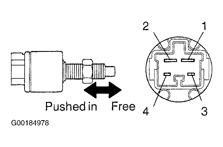 Inspect the stop light switch continuity. See Fig 1. See INSPECTING STOP LIGHT SWITCH CONTINUITY  table. If the continuity is not as specified, replace the switch. See STOP LIGHT SWITCH  under REMOVAL & INSTALLATION.