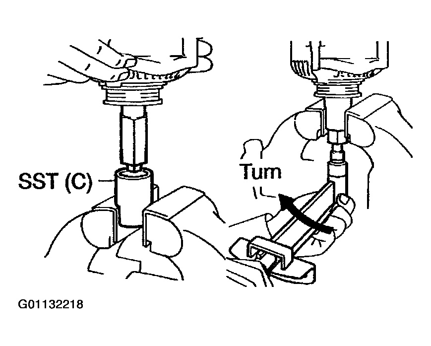 5. Insert SST (B) into SST (C), and attach the pulley nut to SST (C).