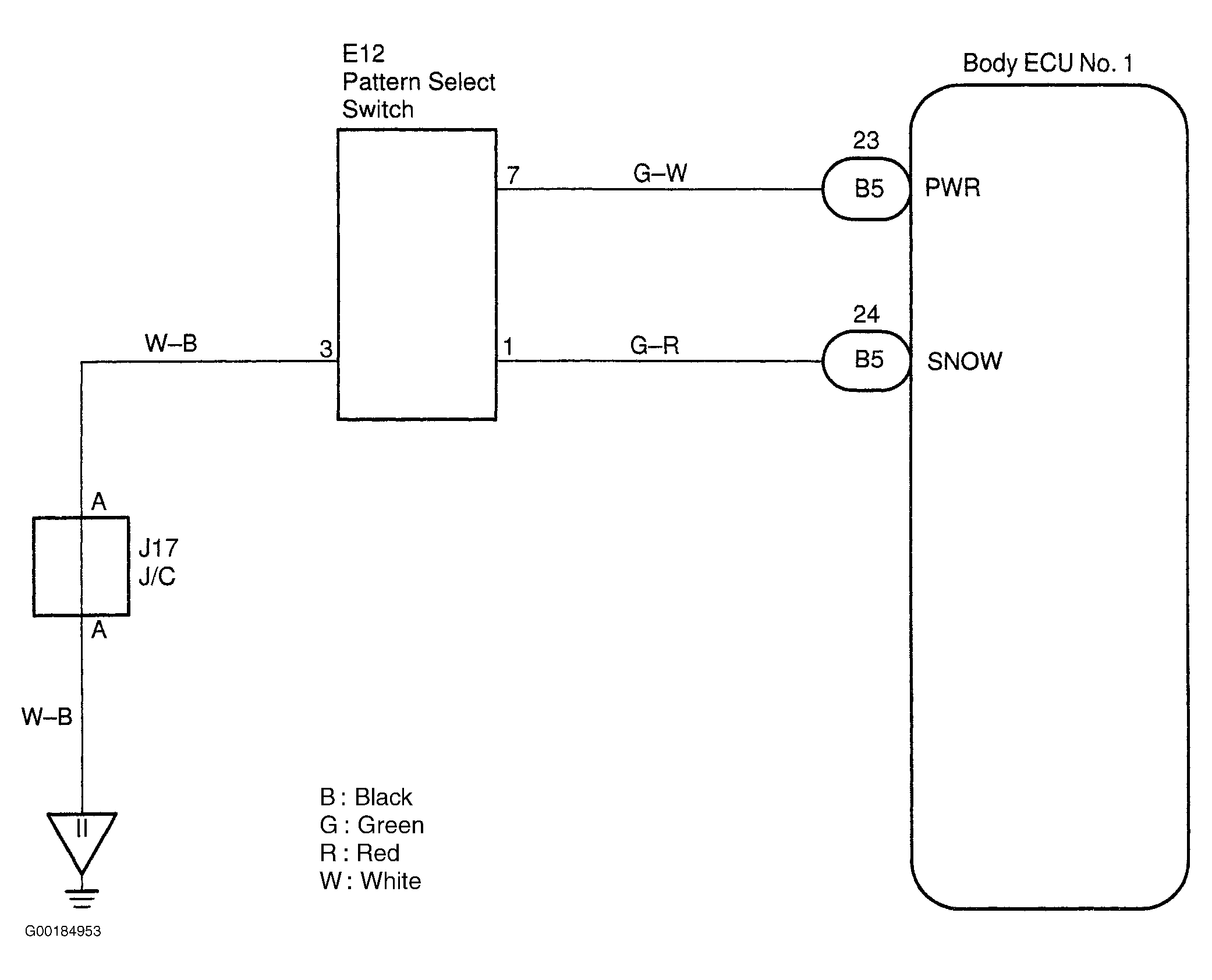 - Check for short to power, short to ground and continuity in the wiring harness and connector between the pattern select switch and body ECU No. 1. If the results are OK, inspect the Engine Control Module (ECM). If the results are not OK, repair or replace the wiring harness or connector.