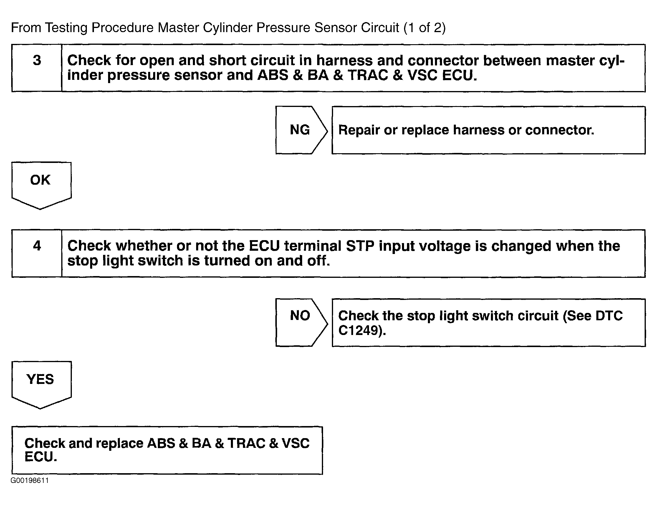 Fig 2: Testing Procedure Master Cylinder Pressure Sensor Circuit (1 Of 2)