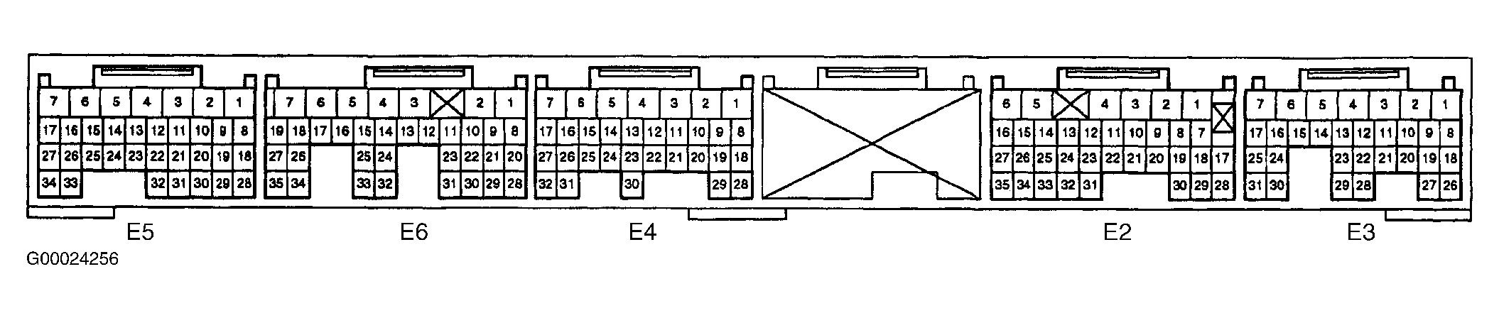 - Check for an open circuit in Brown wire between ground and terminal No. 7 at ECM E6 connector. See WIRING DIAGRAMS