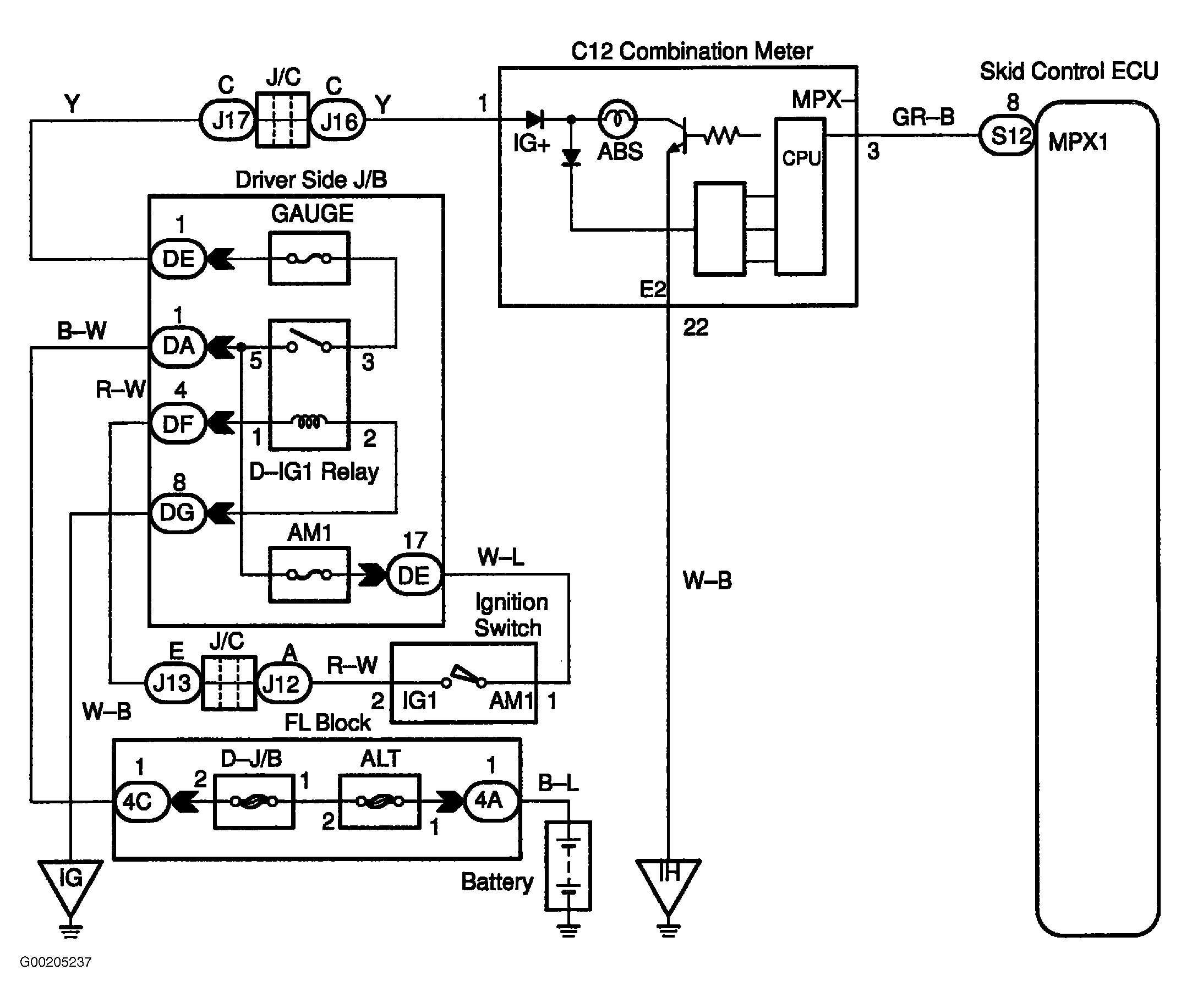 Fig 1: ABS Warning Light Circuit Wiring Diagram