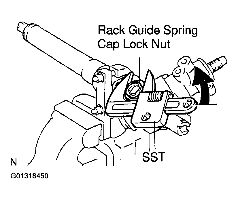 1. Using SST, remove the rack guide spring cap lock nut. See Fig 7.