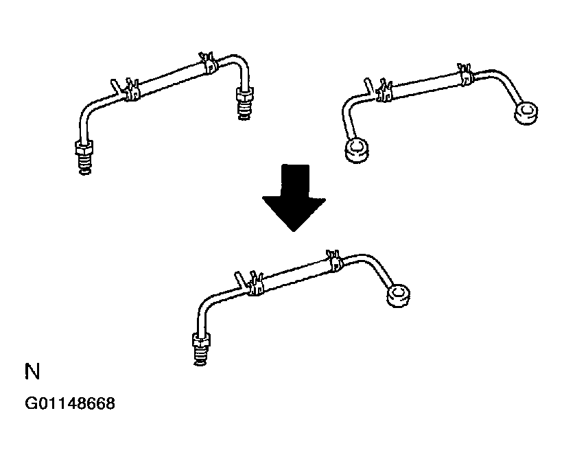 2. Install the 2 turn pressure tubes and 6 gaskets with the 3 bolts.