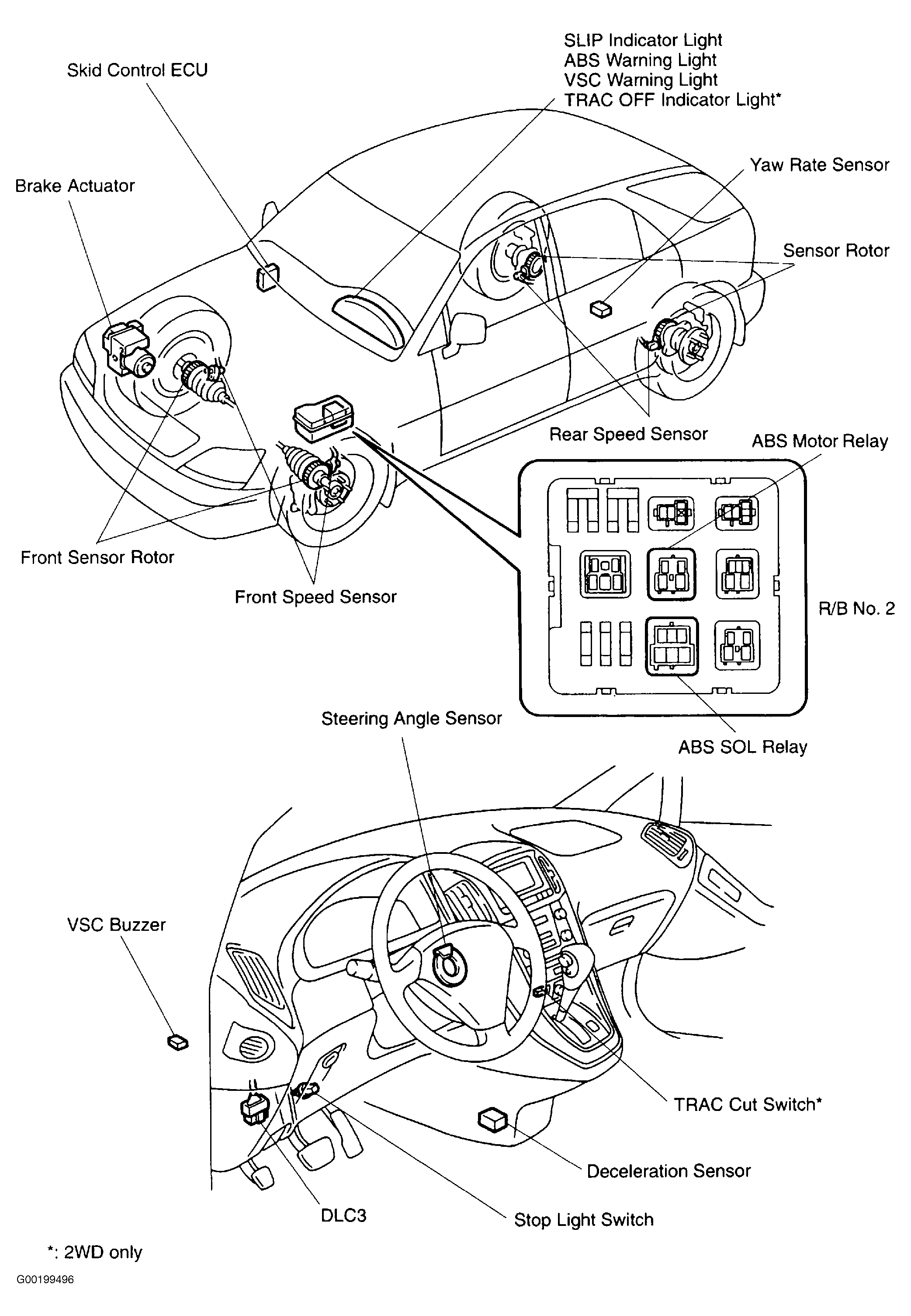 Fig 1: Locating ABS, BA, TRAC & VSC System Components
